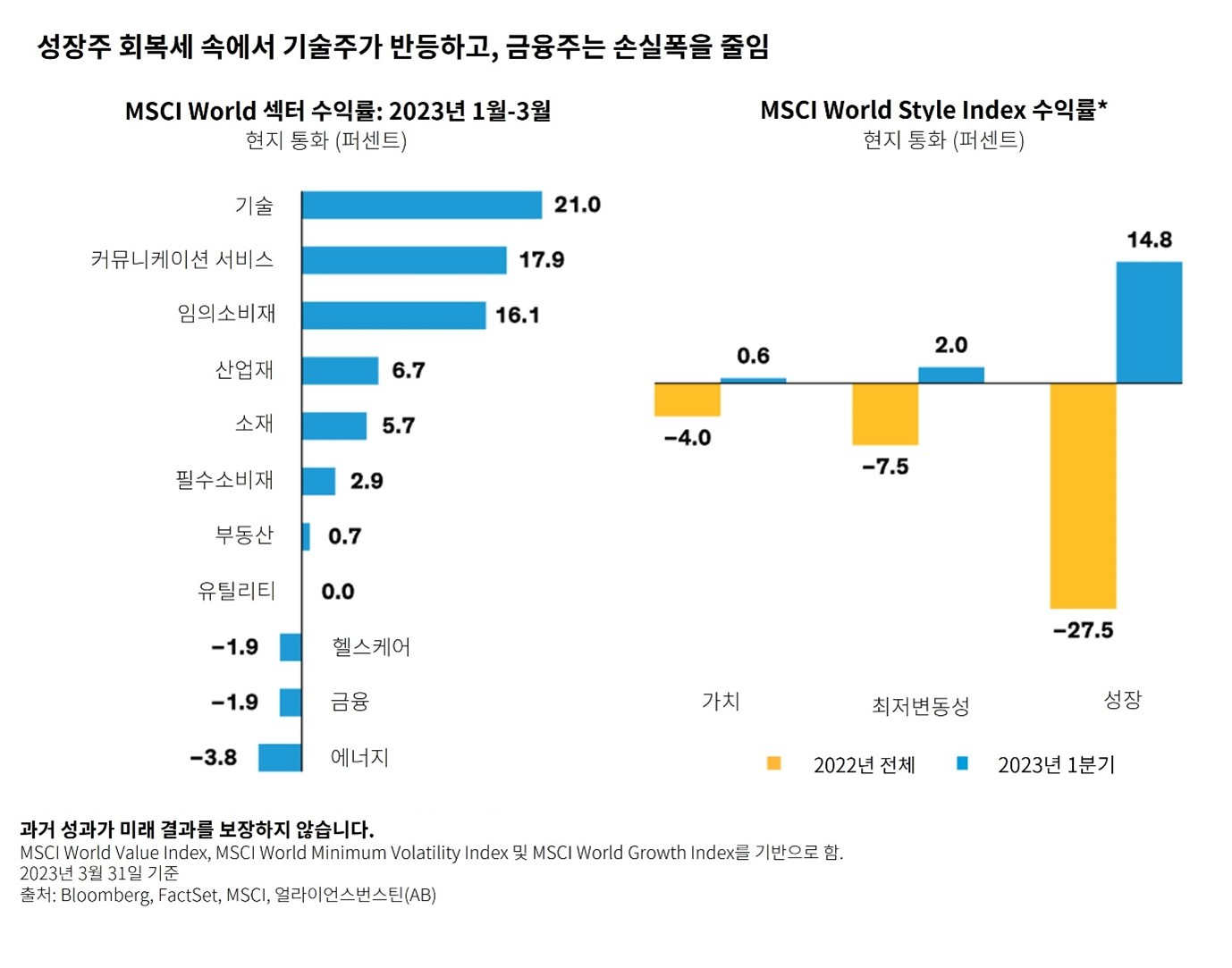 2023년이 시작되었을 때 많은 투자자들이 어느정도 긍정적으로 세계 경제를 전망했습니다. 인플레이션과 금리가 예상보다 빠르게 하락하여 세계 경제가 침체에 빠지지 않고, 2022년에 심각하게 부진했던 주가가 회복될 수 있다는 시나리오였습니다. 하지만 3월 실리콘밸리 은행(SVB)과 시그니처 은행(Signature Bank)의 파산 및 크레디트스위스(Credit Suisse)의 긴급 구제금융은 미국 연준의 급격한 금리 인상 사이클이 기업 재무상태에 영향을 미쳐 기업과 주식에 압력을 가할 수 있으니 경계심을 높여야 한다는 메시지를 기업과 투자자 모두에게 전했습니다.